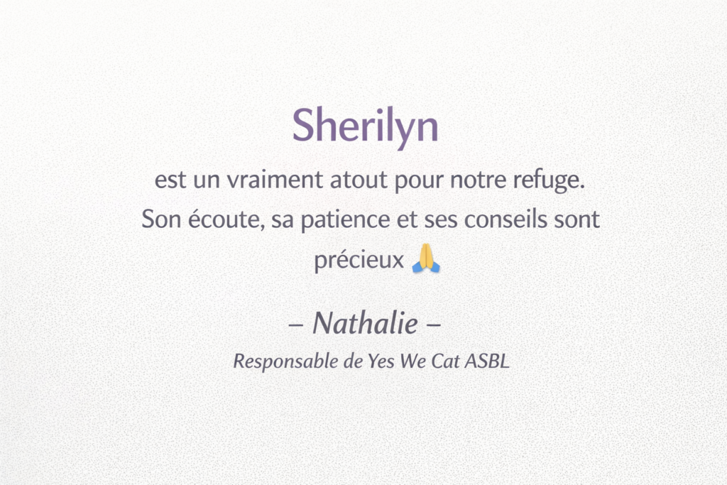 - Bienveillance et empathie sont au programme. Mon objectif est de vous aider vous et votre chat, sans jugement.